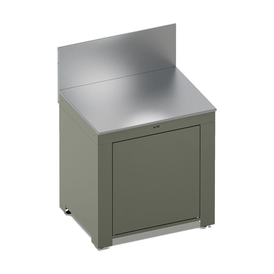 A bútor felülete kiváló minőségű rozsdamentes acél (inox), amely ellenáll az időjárás viszontagságainak, könnyen tisztítható és ideális munkafelületet biztosít az ételek előkészítéséhez vagy egy asztali grill elhelyezéséhez.